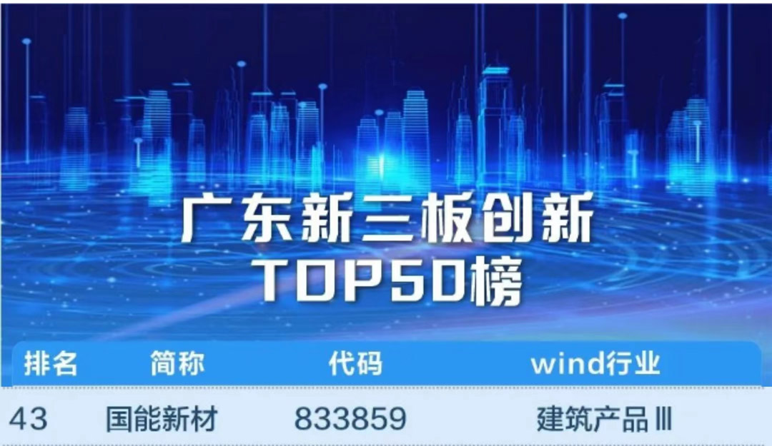 2023年9月25日,證券時報與廣發證券聯合發布“廣東新三板創新TOP50榜”,珠海國能新材在各個評分項目中表現優異,榮登廣東新三板創新TOP50榜。TOP50榜公司指在研發能力、融資能力、成長性、產業鏈競爭力等方面表現突出,連續3年營收高...